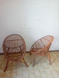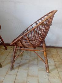 Coppia di poltrone in vimini e bambù design anni 70 vintage modernariato