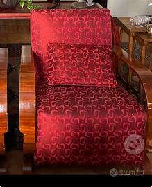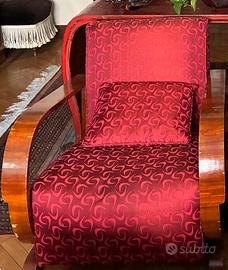 Bellissime poltrone 30 perfettamente rivedtite con tessuto italiane. Due cuscinetti stesso tessuto. Proveniente da dimora dinun parse laziale modtra piccole scheggiature sul legno . Non sono state restaurate x mantenere il fascino del tempo. Ritiro Roma flaminio