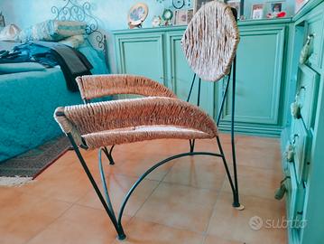 Poltrona con struttura in metallo grigio antracite e fibra di banano.
