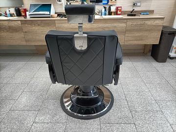 colore nero, girevole e con pompa idraulica, schienale regolabile unitamente all'alzagambe, poggiatesta regolabile e rimovibile.
