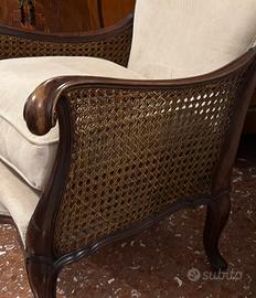 Coppia di poltrone in stile bergère in nice e paglia di vienna,fodera color crema in perfette condizioni!il prezzo è per la coppia!
