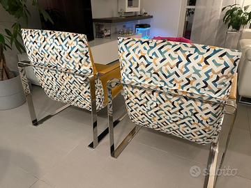Poltrone di design calia italia, in ottimo stato, struttura in acciaio lucido e rivestimento in pelle e tessuto