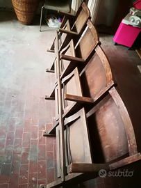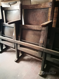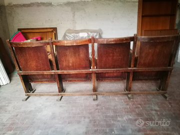 Vendo fila da 4 poltrone cinema anni 50 in legno ben conservate lievi segni del tempo, esemplari rari e unici nel loro genere. cm 200X35h85 Possono essere spedite, costi di spedizione esclusi