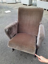 Seduta con imbottitura foderata in velluto originale. Struttura in legno e ferro, solida e stabile. Mantenute in buone condizioni, utilizzate e conservate sempre in appartamento.