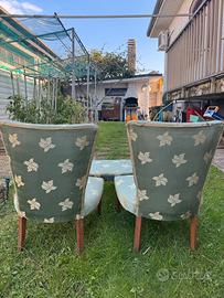 Poltrone con poggiapiedi in tessuto da restaurare anni 50/60