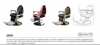 Vendesi 2 poltrone da barbiere modello Arrow anno 2018, di colore rosso, buono stato, funzionsnti regolarmente, ottime anche come complemento di arredo.