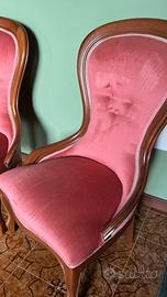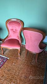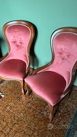 Vendesi 2 poltrone da camera in velluto rosa antico in perfette condizioni.