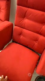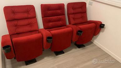 Bellissime poltrone da cinema, perfette per una sala home theater. Sono tre poltrone in velluto rosso, con comodi braccioli e porta bicchieri. Ideali per godersi film e serie TV nel massimo comfort. - Dotate di comodi braccioli.