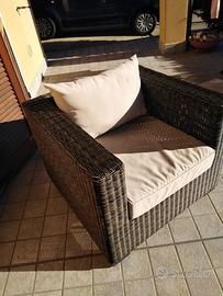 Vendo poltrone da giardino per l'esattezza 2. Sono in resina intrecciata e acquistate da Maison du Monde. Sono ancora in vendita a 379 € Cad. Io le vendo a 150€ Cad. Ritiro da parte dell'acquirente.
