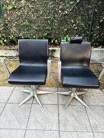 Vendo due poltrone da parrucchiere con pompa idraulica come da foto. Usate ma ben tenute e ancora perfettamente utilizzabili. Ritiro a carico dell’acquirente.