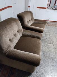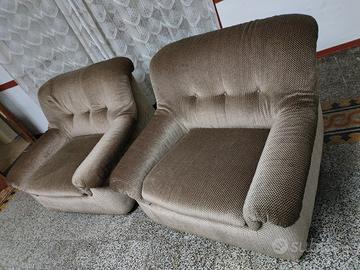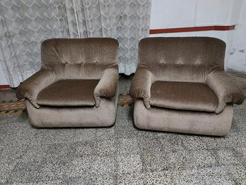 Vendesi coppia di poltrone da salotto anni 70/ 80 in tessuto velluto a piccoli quadretti color ambra e nero. Sedute con imbottitura in ottimo stato, senza particolari segni di usura.