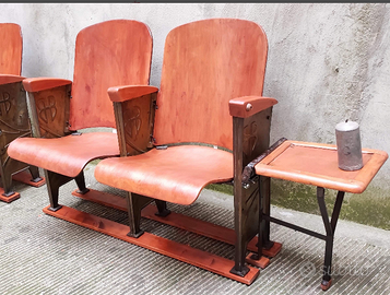 Vecchie poltrone in legno e ghisa degli anni 40 provenienti da un teatro di Digione in Francia restaurate con strapuntino laterale originale. Visibili a Milano. Prezzo già scontato e non trattabile