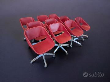 Set di Dieci Poltrone rosse, con telaio a cinque razze in alluminio. Condizioni ottime, ideali per l'ufficio. Per qualsiasi informazione contattatemi al 3403341898