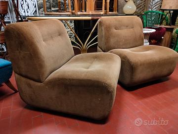 Coppia di poltrone di design vintage, modernariato anni 70 in velluto a coste.