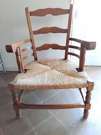 Poltrone rustiche di legno chiaro, impagliate, in ottimo stato. 2 poltrone a 90 €/cd. È possibile aggiungere cuscini sfoderabili lavabili 10€/cd.