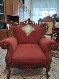 vendesi bellissimo salotto antico composto da: 1) un divano a tre posti; 2) due poltrone; 3) tavolino portaoggetti apribile. Tutto tenuto in maniera maniacale, praticamente nuovi. Il prezzo totale e' di euro 1000
