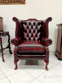 Modelli classici come la poltrona club e la poltrona Queen Anne nelle tipiche colorazioni Antique Red e Antique Brown.