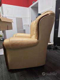 Vendo due poltrone e un divano tre posti in pelle e radica per cambio arredo trasporto a carico dell'acquirente