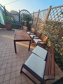 vendo per inutilizzo 4 poltrone legno tavolo e 1 "divano " legno modello Applaro ikea. + 6 cuscini si presentano in buono stato, il legno si riavviva con giusta manutenzione. vendo tutto a 220 euro . solo ritiro visto le dimensioni