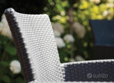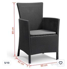 Allibert Iowa poltrone dining graffite Materiale rattan Dimensioni poltrona 62 x 60 x 89 cm Altezza seduta 42 cm. Resistente alle intemperie. Tavolino contenitore 53x 53x 40 Cuscini inclusi NO SPEDIZIONE. Ritiro a carico dell’acquirente. VENDUTO MONTATO