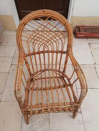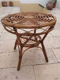 N. 3 poltrone da giardino e n. 1 tavolino tondo in vero legno di bambù e vimini naturale intrecciato.