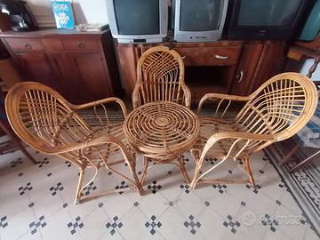 Poltrone e Tavolino in legno di bambù e vimini