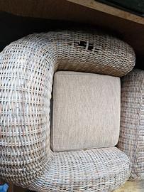 Due poltrone e tavolino in vimini da esterno tre pezzi.