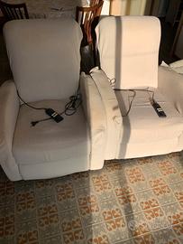 Ancora per pochi giorni … Vendo 2 poltrone con funzionalità anche per persone anziane, con il telecomando si puó facilitare seduta ed alzata, schienale regolabile, foderate in quanto la struttura orginale era in pelle con segni di usura.