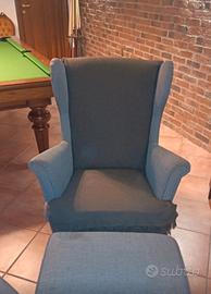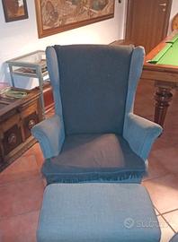 poltrone grige IKEA con poggiapiedi inclusi, con coperte di protezione in cotone di colore grigio scuro, vendita anche singola (poltrona con coperta e poggiapiedi) al prezzo di 200€
