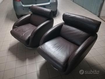 Due poltrone in vera pelle marrone Chateau Dax base tonda cromata