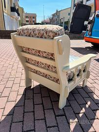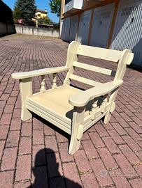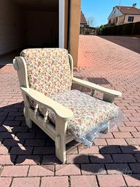 Vendo coppia di poltrone in legno, color panna, si possono posizionare sia internamente che esternamente. Assieme cedo anche i cuscini.