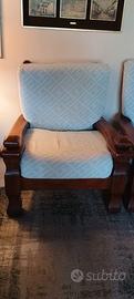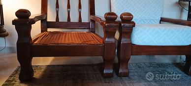 Vendo coppia di poltrone in stile rustico spagnolo, degli anni '70, in perfetto stato, comprensivi di cuscini fatti a mano. Misure: