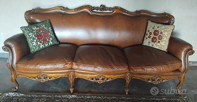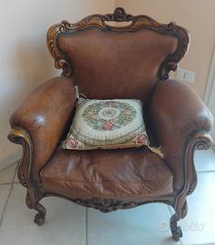 Poltrone in massello di noce nazionale, anticate a mano con finitura a cera, mobili d'arte