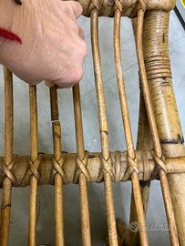 Due poltrone in midollino degli anni ‘60 in buone condizioni, necessitano solo di un trattamento ad olio di lino per ravvivare il midollino e un po’ di colla su una bacchetta. Guarda foto. Il prezzo è in relazione alle loro condizioni.