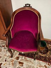 2 Poltrone in noce antico con velluto rosso stile Luigi Filippo