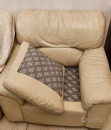 2 poltrone in vera pelle bianche dimesioni lunghezza 98 cm profondita’ 87 cm altezza 87 cm. Prezzo singola poltrona 100 euro , la coppia 180 euro . Ritiro possibile solo a domicilio Roma zona Furio Canillo