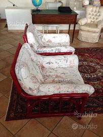 vendo due poltrone in rattan laccate rosse con cuscini fantasia. per info e prezzo sono a disposizione.