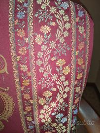 Coppia di poltrone in legno dal design classico, in stile Luigi Filippo, struttura sinuosa e schienale imbottito, in buone condizioni, come da foto