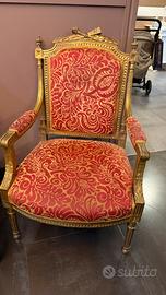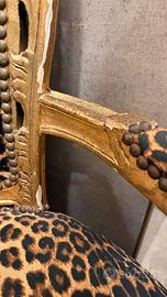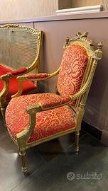 Vendo eleganti poltrone in stile classico con struttura dorata e lavorazioni decorative. Seduta ampia e comoda, perfetta per accoglienza clienti o arredamento di ambienti di alto livello. Tre varianti disponibili: • velluto rosso • damascato rosso/oro (2 disponibili) • fantasia leopardata (alcune imperfezioni come In foto Arredo perfetto per dare un’immagine forte, curata e di valore al tuo spazio. 90€ cadauna In blocco 250€ tutte e 4