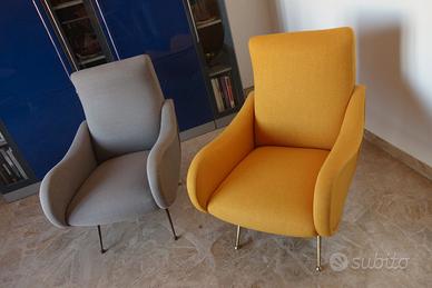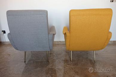 Poltroncine primi anni 60' disegnate da Marco Zanuso per Arflex nei primi anni 50'. Gambe tubolari a spillo e non quadrate. Rifoderate e controllate un paio di anni fa. Tenute con estrema cura. Per cortesia, astenersi perditempo e sognatori. No scambi, no permute. Consegna solo a mano. Il prezzo è riferito alla vendita in blocco. Preferisco contatto telefonico per evitare perdite di tempo. Cell.3920807580 Grazie Edoardo