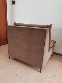 Disponibile anche divano due posti, dello stesso tessuto, trasformabile in letto matrimoniale, completo di materasso (misure divano L.172 x H.80 x P.86).