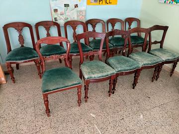 Come da foto vendo preferibilmente in blocco: 2 poltroncine inizio '900, 150 euro l'una 2 poltrone fine '800, 150 euro l'una 11 sedie antiche, 20 euro l'una. Vendo in blocco