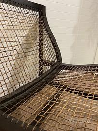 2 Poltrone mod. Yoshi con seduta e schienale in abaca e struttura in legno colore wengè. Dimensioni: cm 61 x prof. 73x h 70