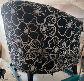Vendo poltrone dal design moderno ed elegante, rivestite con tessuto nero e bianco a fantasia floreale. Mai utilizzate, come si può vedere dalle foto: i cuscini sono ancora sigillati nel loro cellophane.