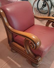 2 poltrone in pelle,scocca e braccioli legno. regalo