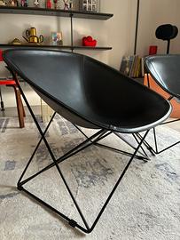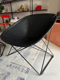 La lounge chair Popsi di Lema è un progetto d'arredo ideato da Ferruccio Laviani che soddisfa l'esigenza di una seduta ricercata, sia per il design che per l'uso dei materiali. Popsi si caratterizza per il sedile a guscio e per l'uso di due materiali apparentemente incompatibili: il cuoio e il metallo. Infatti, la base è costituita da un disegno intrecciato, mentre la seduta è in cuoio a forma di guscio. Vendo 2 poltrone al prezzo di 700€ l'una.
