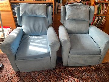 Vendo 2 poltrone reclinabili azzurre in perfette condizioni, meccanismo manuale, 40 euro l’una, 70 la coppia; non spedisco