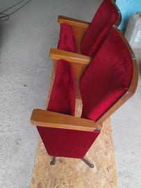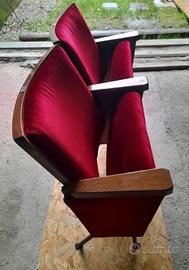 Poltrone cinema da 2 sedute anni 60. In velluto rosso, vista la loro età, si sono conservate in ottimo stato con qualche segno del tempo. lunghezza 106 cm altezza 76 cm profondità chiuse 48 cm profondità aperte 65 cm