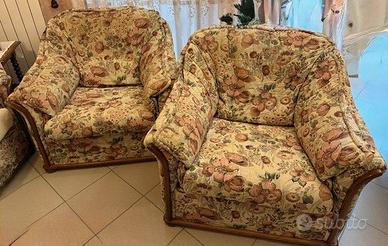Vendo n.2 poltrone vintage: sono in tessuto sfoderabile e la struttura portante è in ottime condizioni, il legno non ha segni particolari di usura, quasi impeccabile.