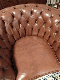 2 Poltrone in pelle marrone CHESTERFIELD stile barocco, legno intarsiato. Vintage.